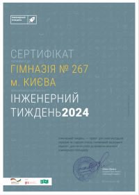 Íàä³éøëè ñåðòèô³êàòè çà ó÷àñòü ã³ìíà糿 ó ïðîâåäåíí³ "²íæåíåðíîãî òèæíÿ - 2024" - ³í³ö³àòèâè, ïîêëèêàíî¿ çàö³êàâèòè ä³òåé íàóêîþ òà ñïðèÿòè ðîçâèòêó ïîòåíö³àëó ñó÷àñíî¿ ìîëîä³. Äÿêóºìî ã³ìíàç³éíîìó êîîðäèíàòîðó òèæíÿ Àíäð³þ Âîëîäèìèðîâè÷ó Çâÿã³íöåâó, â÷èòåëþ ô³çèêè òà ³íôîðìàòèêè, çà ïîïóëÿðèçàö³þ íàâ÷àëüíîãî çàêëàäó ³ áàæàºìî çä³éñíåííÿ òâîð÷èõ ïëàí³â.